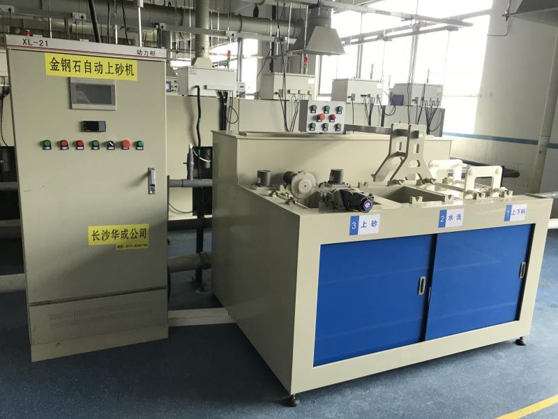 用途:磨頭電鍍、化學鍍金剛砂的預鍍、上砂、加厚。配置:鍍鎳槽、鈦陽極、整流器、電熱管、溫控器、超聲波、上砂習布筒、攪拌裝置、機械傳動裝置、自動控制電氣柜等工藝配套設備。功能:工裝自動旋轉,更能定時90度自動翻轉并復位,持續(xù)鍍鎳。效果:鍍層均勻,節(jié)省人工,生產(chǎn)效率高;可建全自動生產(chǎn)線。